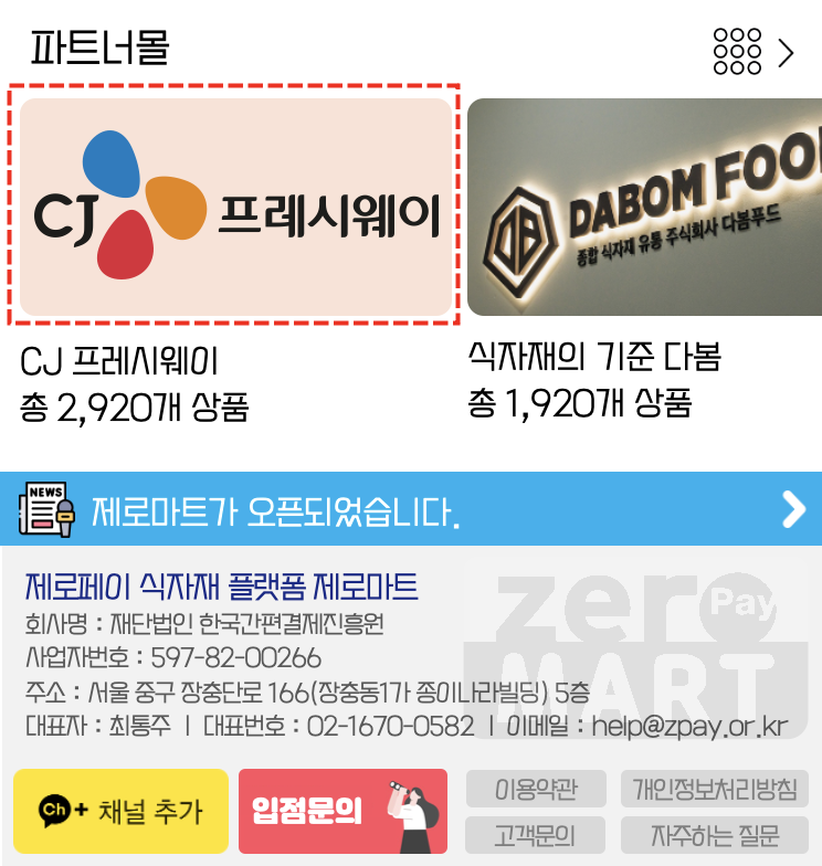 제로마트는 별도의 파트너매장을 제공 및 운영합니다.