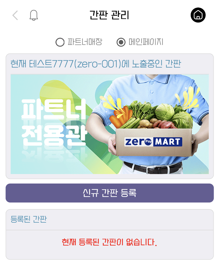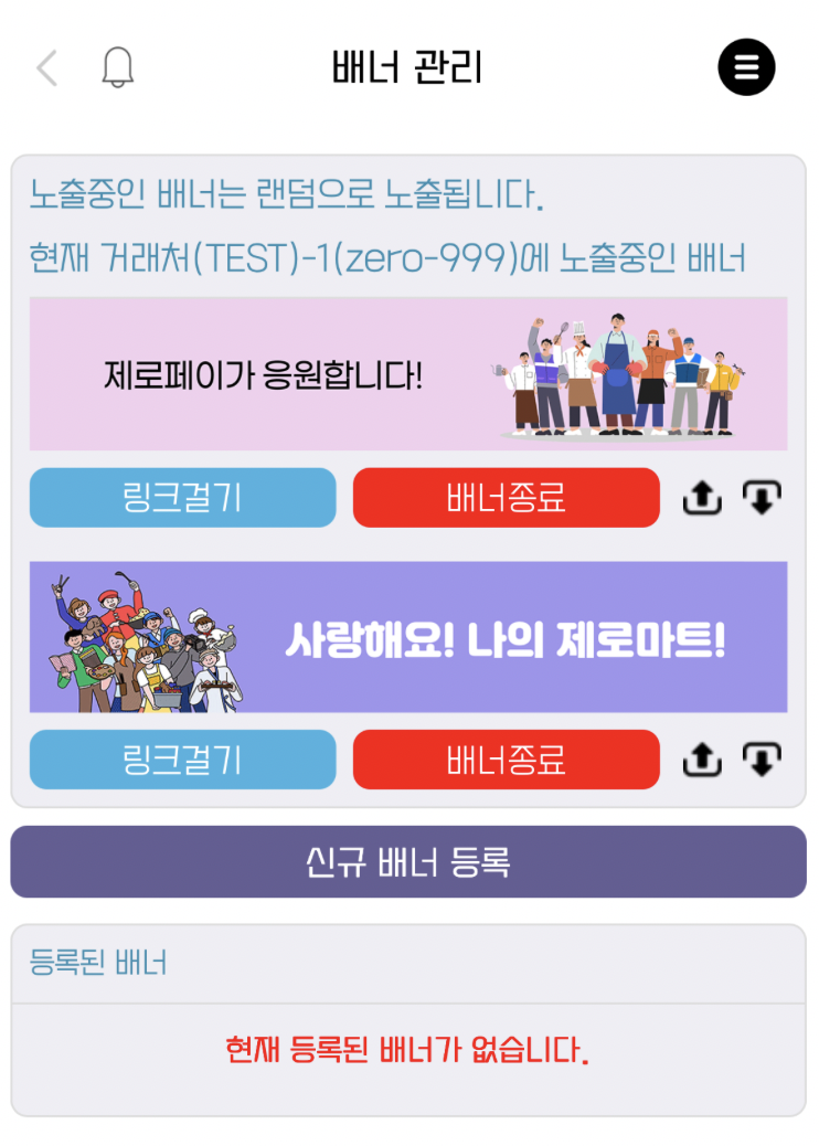 제로마트내의 자신의 파트너매장에 원하는 배너를 걸수 있습니다.