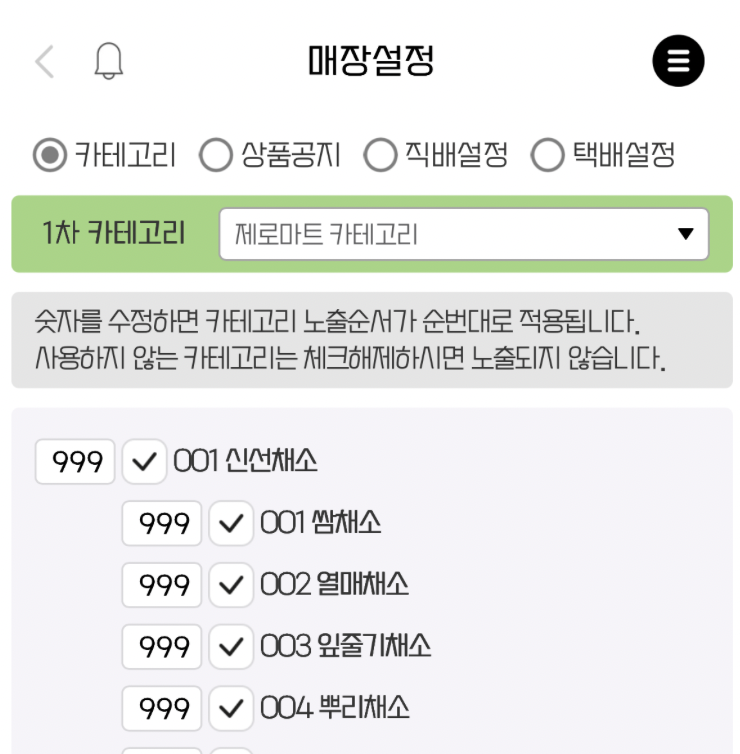 단, 노출순서 설정은 판매자 파트너매장에서만 적용되며 제로마트 전체상품에서는 해당 설정이 적용되지 않습니다.
