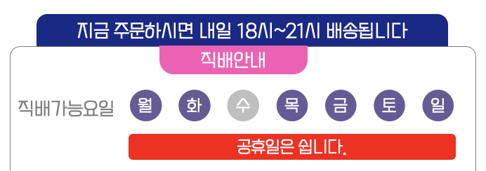 또한 신선식품 택배발송 특성상 휴무일 전날에는 발송을 안하는 것으로 설정되어 있습니다.