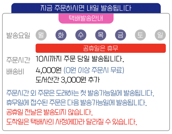 배송시간은 고객이 접속한 시간을 기준으로 안내됩니다.