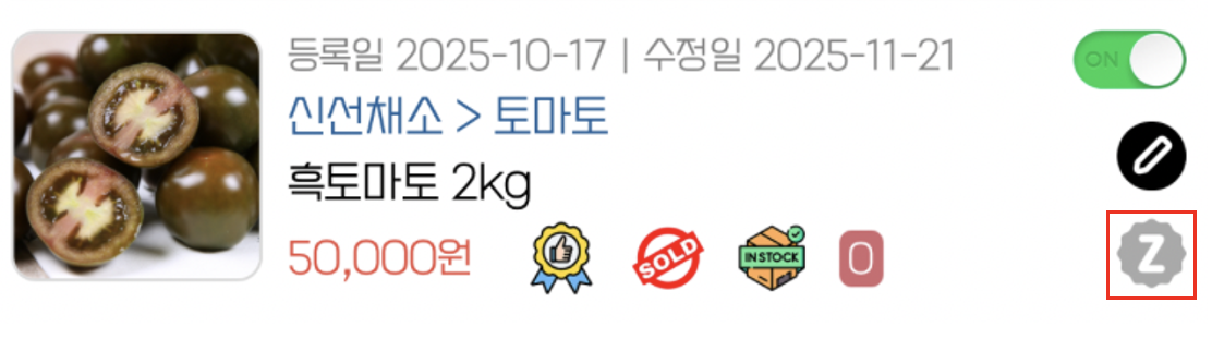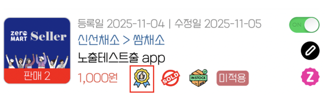 참고로 퀵수정 아이콘은 파트너(판매자) 대표계정, 공동관리계정으로 제로마트에 로그인시에 노출됩니다.